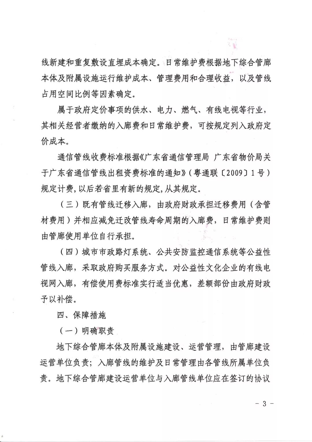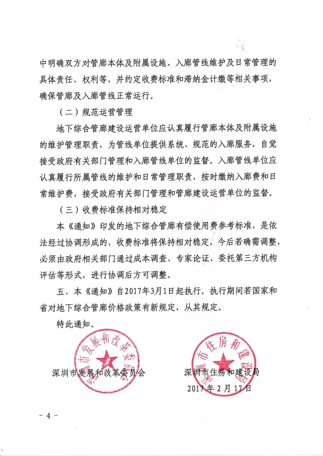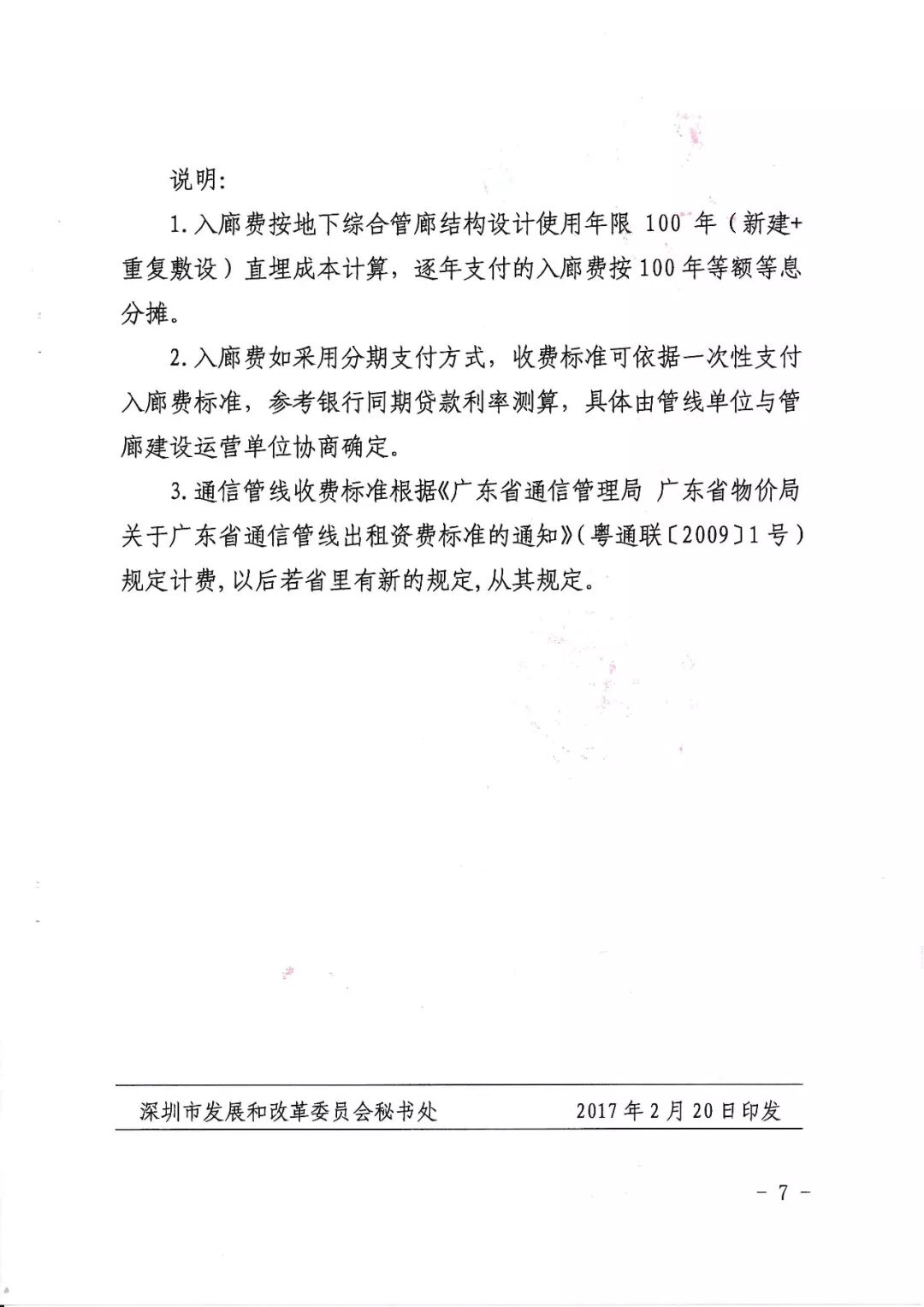 深圳市地下综合管廊有偿使用收费参考标准事项已经深圳市政府同意,现联合深圳市发展和改革委员会印发,请遵照执行。
