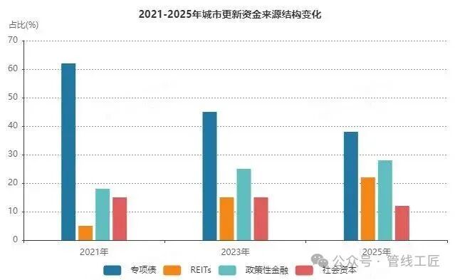 城市更新的资金支持体系在2021-2025年间发生了结构性变化。2021年以棚改专项债为主,占比超60%,REITs试点仅限仓储物流/产业园。而到2025年,基础设施REITs已扩容至老旧小区改造,但需注意项目收益率≥4%的硬性门槛。华夏北京保障房REIT的发行案例为行业提供了重要参考。