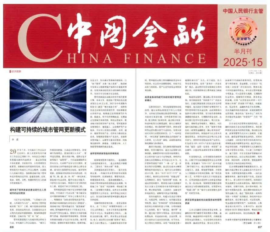 近日,《中国金融》刊发中国银河投资党委书记、董事长许诺署名文章《构建可持续的城市管网更新模式》。