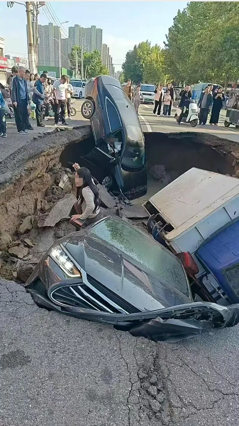 9月20日下午4点多,周口市市中心五一路和黄河路红绿灯路口道路突然塌陷,有三辆车辆陷入,引发关注。目击者告诉记者,塌陷深度有两米左右,没有人员伤亡。当晚11点,潇湘晨报记者从当地交警部门了解到,目前仍在处置当中。