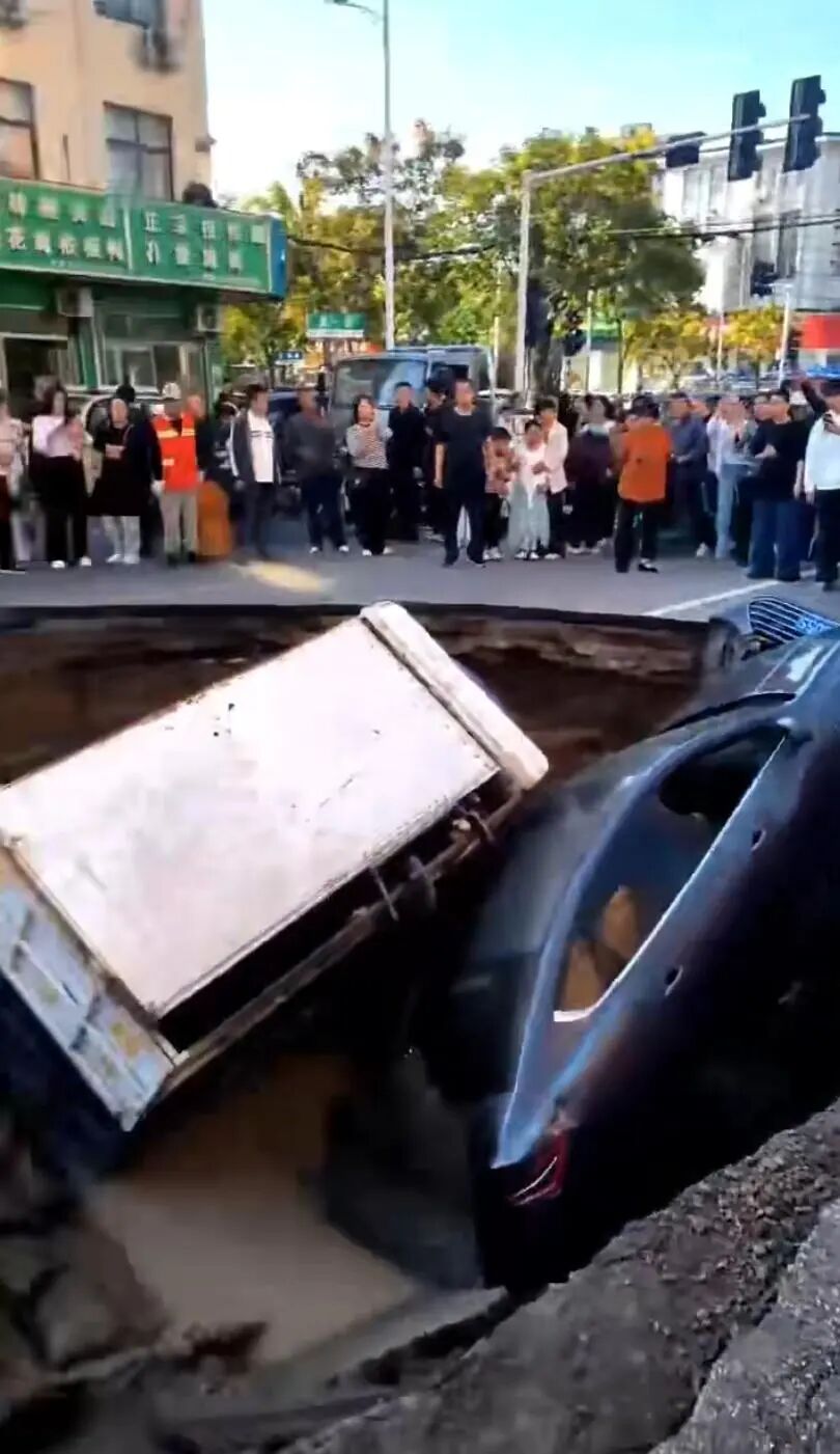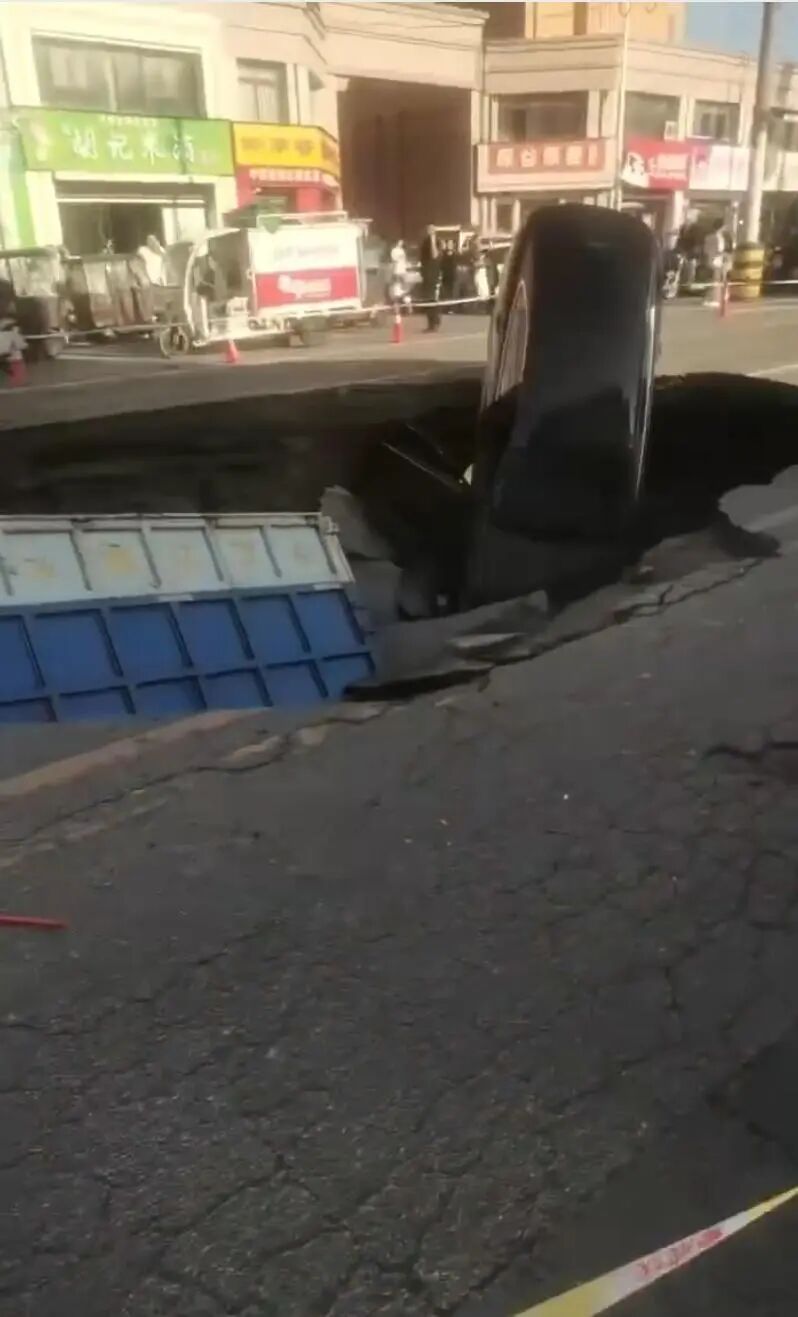 目击者称,塌陷面积有10个平方米,深度2米左右,有两辆小车,一辆垃圾清运车陷入里面,最后一台小车的头部陷入,尾部腾空。幸运的是,三辆车辆上的人员都很快爬了上来,事件没有人员伤亡。