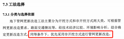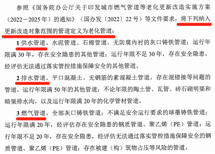 01 明确改造对象与评估标准 导则首要的贡献是清晰地界定了什么是需要优先更新的“老化管道”,并建立了科学的评估体系,解决了“改什么”和“先改谁”的问题。 1. 老旧管道的界定:导则详细列出了各类老旧管道的标准。例如,供水管道中的水泥管、石棉管和无内衬的灰口铸铁管;排水管道中的平口混凝土管、素混凝土管,以及不论使用年限的陶土管、瓦管等;燃气管道中的全部灰口铸铁管等。这不仅包括了超期服役的管道,也涵盖了无论使用年限、但本身材质落后或存在严重安全隐患的管道。 2. 量化评估与分级:导则建立了量化评估体系,通过设置多个评估维度(如缺陷情况、所处区域重要性、事故历史等)并计算“管道老化指数”,将设施划分为不同老化等级,对应“符合安全要求”、“限期改造”、“立即改造”等处置策略,为制定改造计划提供了精准的数据支撑。 02 规范前期调查与检测 导则强调改造工作必须建立在充分的数据基础上,为此规范了前期调查与检测流程。 1. 全面调查:要求更新改造前必须开展全面的资料调查,涵盖规划建设(如竣工图、GIS数据)、运行状况(如腐蚀、泄漏情况)和维护养护(如事故记录)三大类信息,以全面掌握管道状况。 2. 专业检测:导则明确了检测条件与内容,建议由专业第三方机构完成,确保问题识别的客观与准确。 03 推崇科学施工与智慧运维 在改造实施和后期管理方面,导则突出了“最小干扰”和“长效管理”的先进理念。 1. 鼓励非开挖技术:导则明确提出,地下管网改造应优先选择对交通、环境和居民生活影响小的方案,鼓励采用非开挖修复技术。同时要求,同一区域不同管线施工应协调同步,力求“一次开挖,同步施工”,从技术和管理层面根治“马路拉链”问题。 2. 全生命周期管理:导则要求更新改造完成后,必须建立长效运维管理机制,并推广应用智能管理系统,实现对地下管网全生命周期的监测与管控,确保改造的长期效果。 04 强调系统规划与可持续理念 纵观全文,导则体现了从被动应对到主动管理的系统性思维转变。