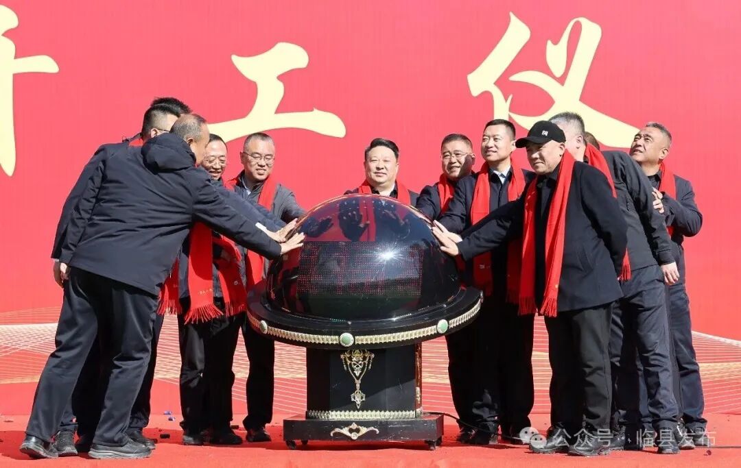 县领导和企业负责人共同按下水晶圆球见证项目开工
